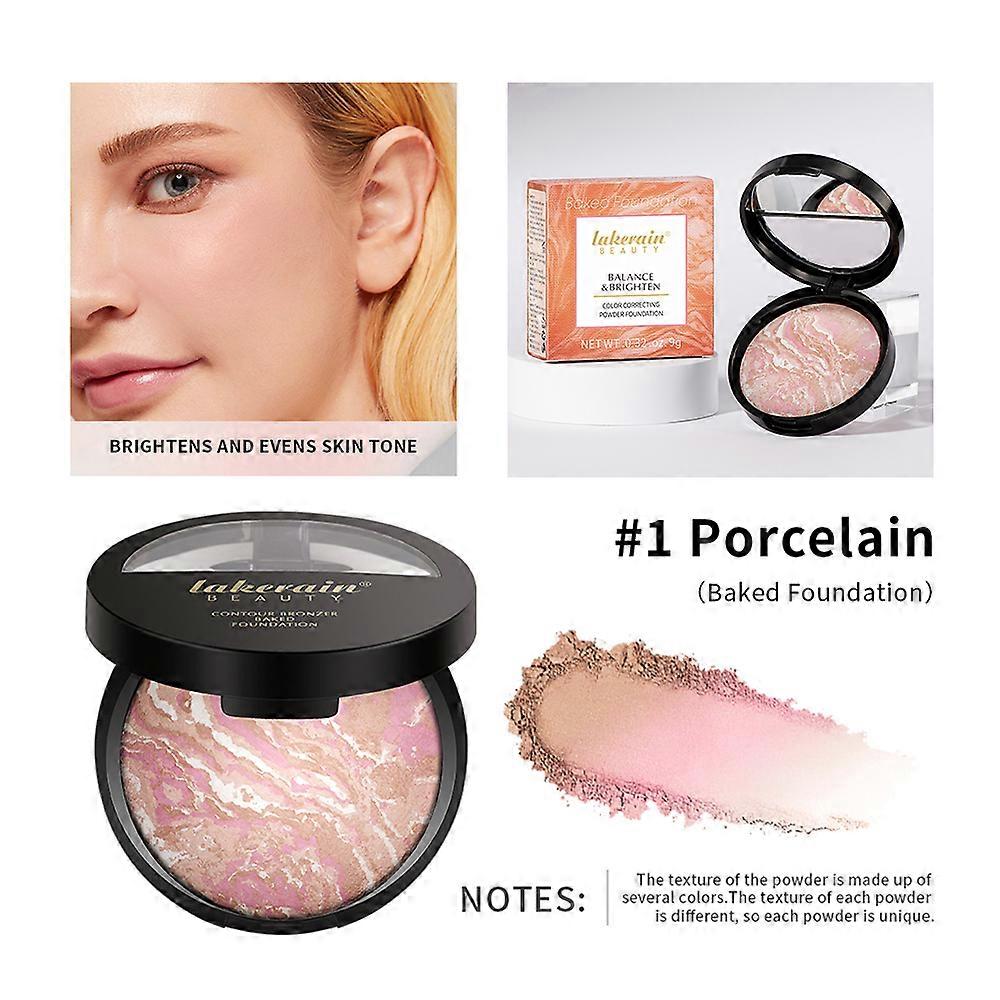 Demi Matte Natural Finish Baked Brighten Color Correcting Powder Foundation Buildable Light to Coverage Oil Control Makeup