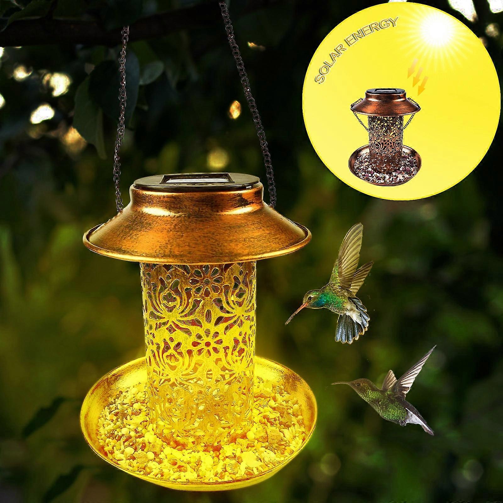 Fankiway Outdoor Bird Feeders, Metal Wrought Iron Solar Lamp Hollow Outdoor Antique Hanging Bird Feeder