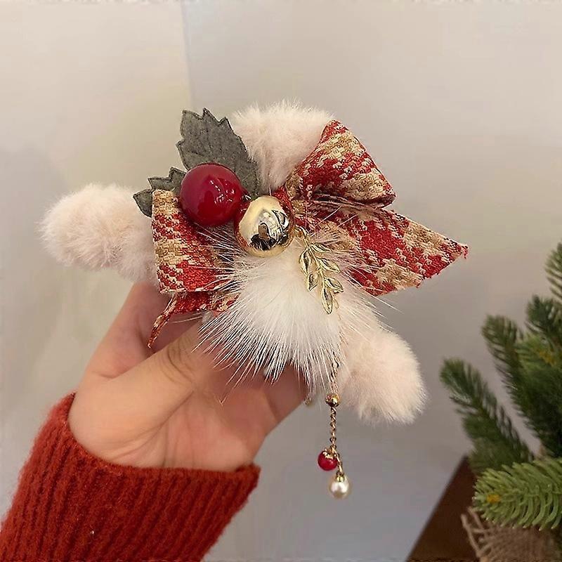 1/2pcs Elegant Christmas Plush Bow Tassel Hair Claw Clips for Women-Holidays, Christmas Day, Thanksgiving Gifts