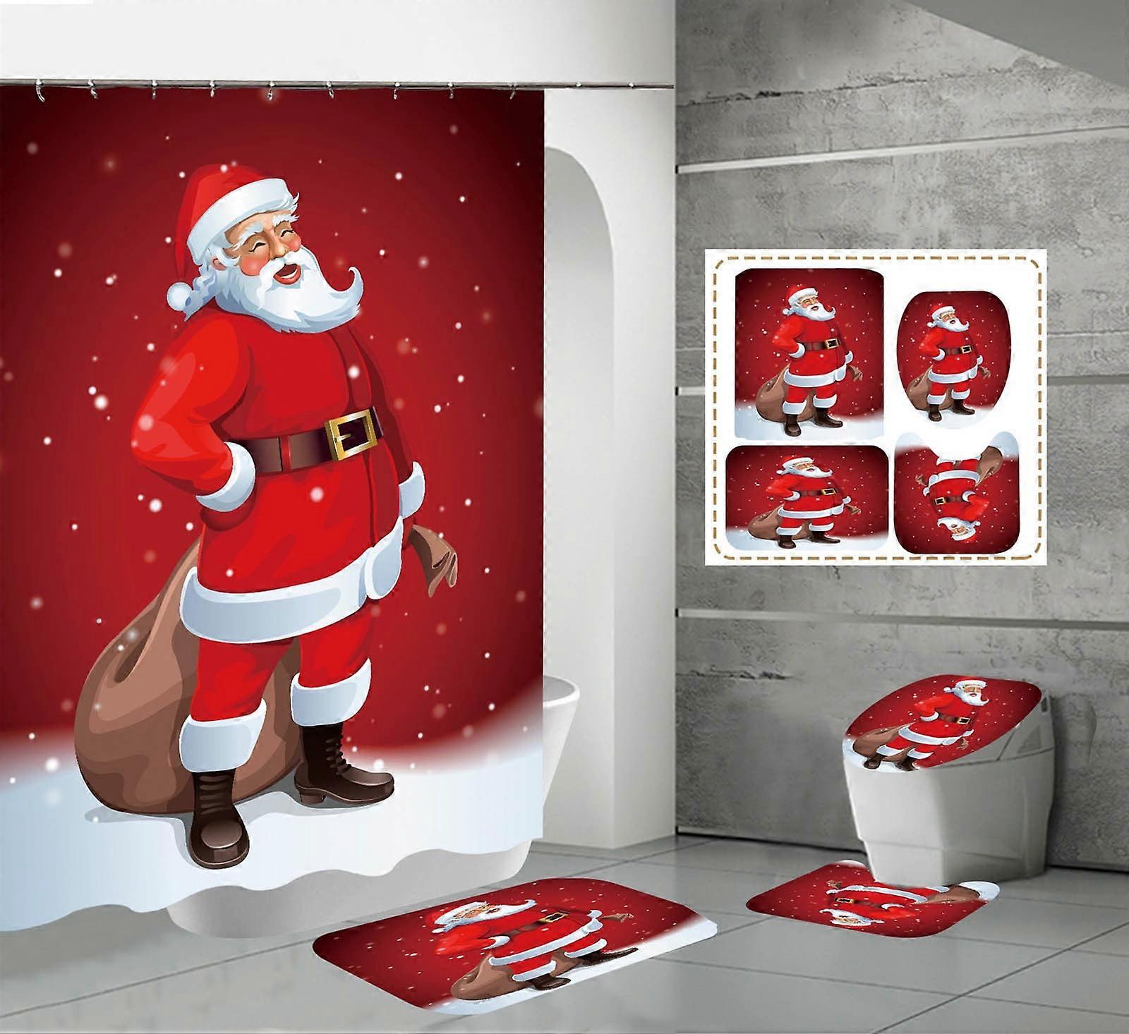 Christmas Snowman Print Toilet Bathroom Mat and Shower Curtain Four-Piece Set