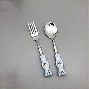 1Set Stainless Steel Spoon Fork Korean Cute Bear Dessert Tableware Set Coffee Spoon Dinnerware Cutlery Set Kitchen Accessories