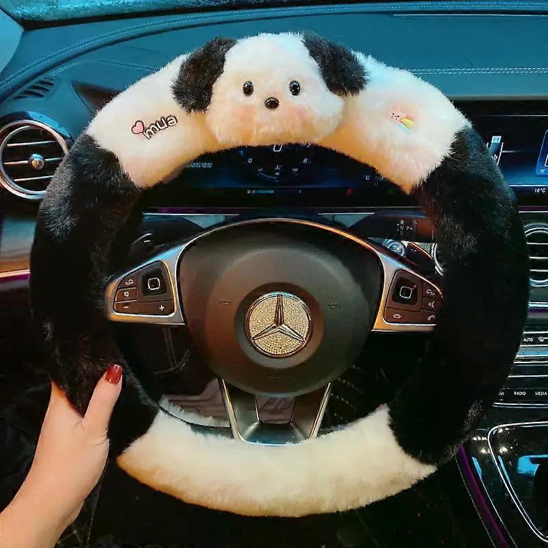 Winter Cute Pochacco Car Steering Wheel Cover Warm Plush Cartoon Anti Slip Handle Cover for Men and Women Cute Car Accessories
