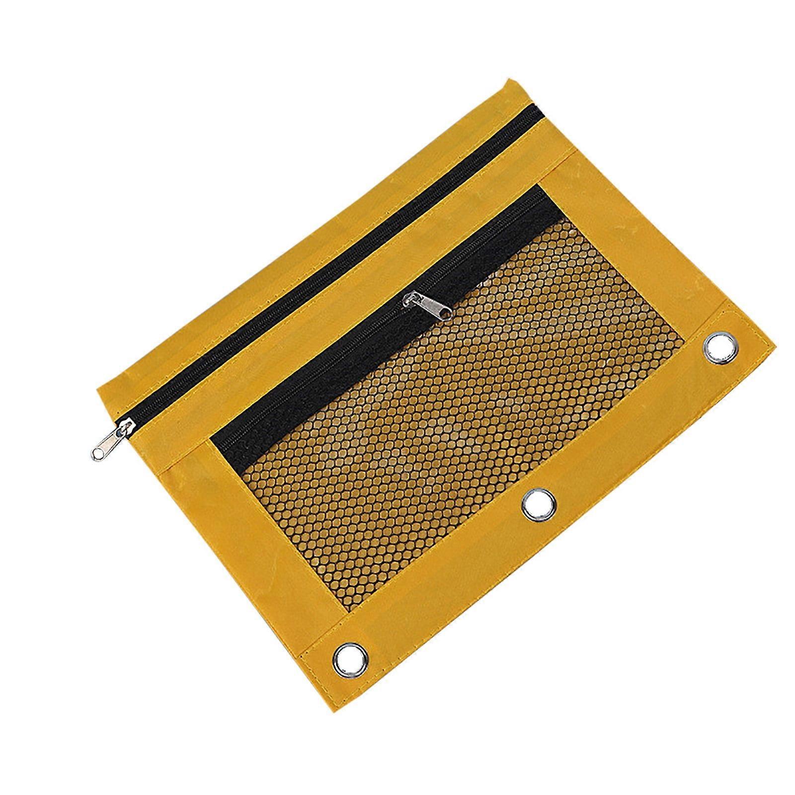 Yonrjhukm Cloth Eyelet Binder B5 Office Storage File Bag with Three Holes and Double Zipper Pen Bag