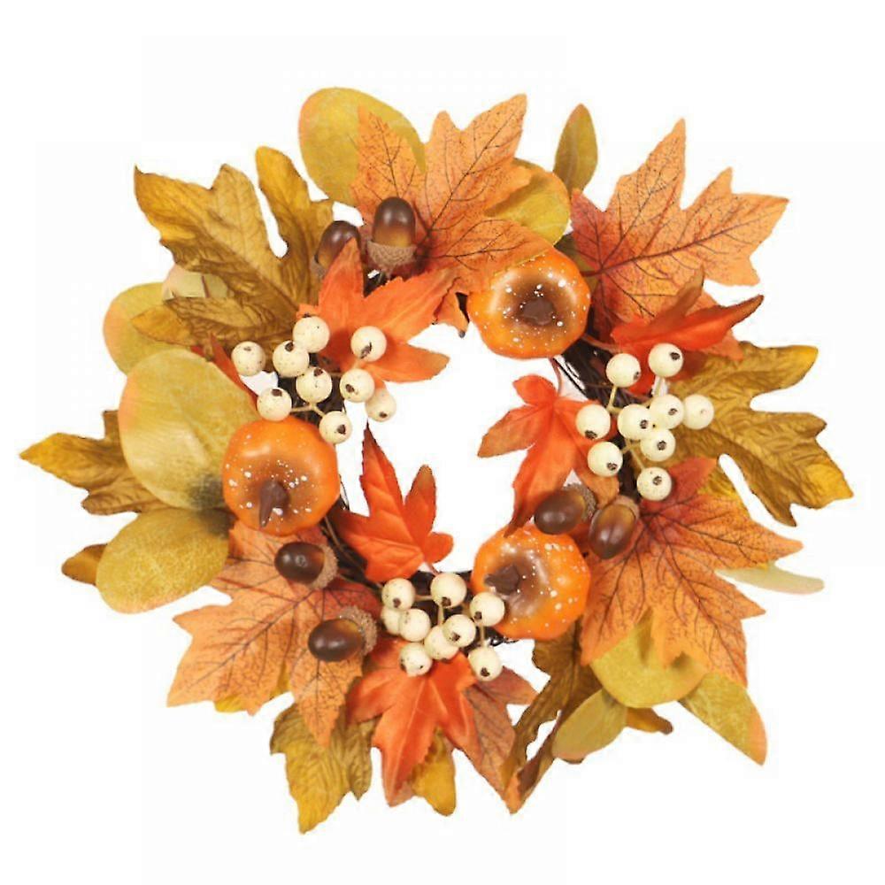 12 Inch Fall Door Wreath Autumn Maple Leaf Pumpkin Harvest Wreath for Front Door Thanksgiving Halloween Decorations