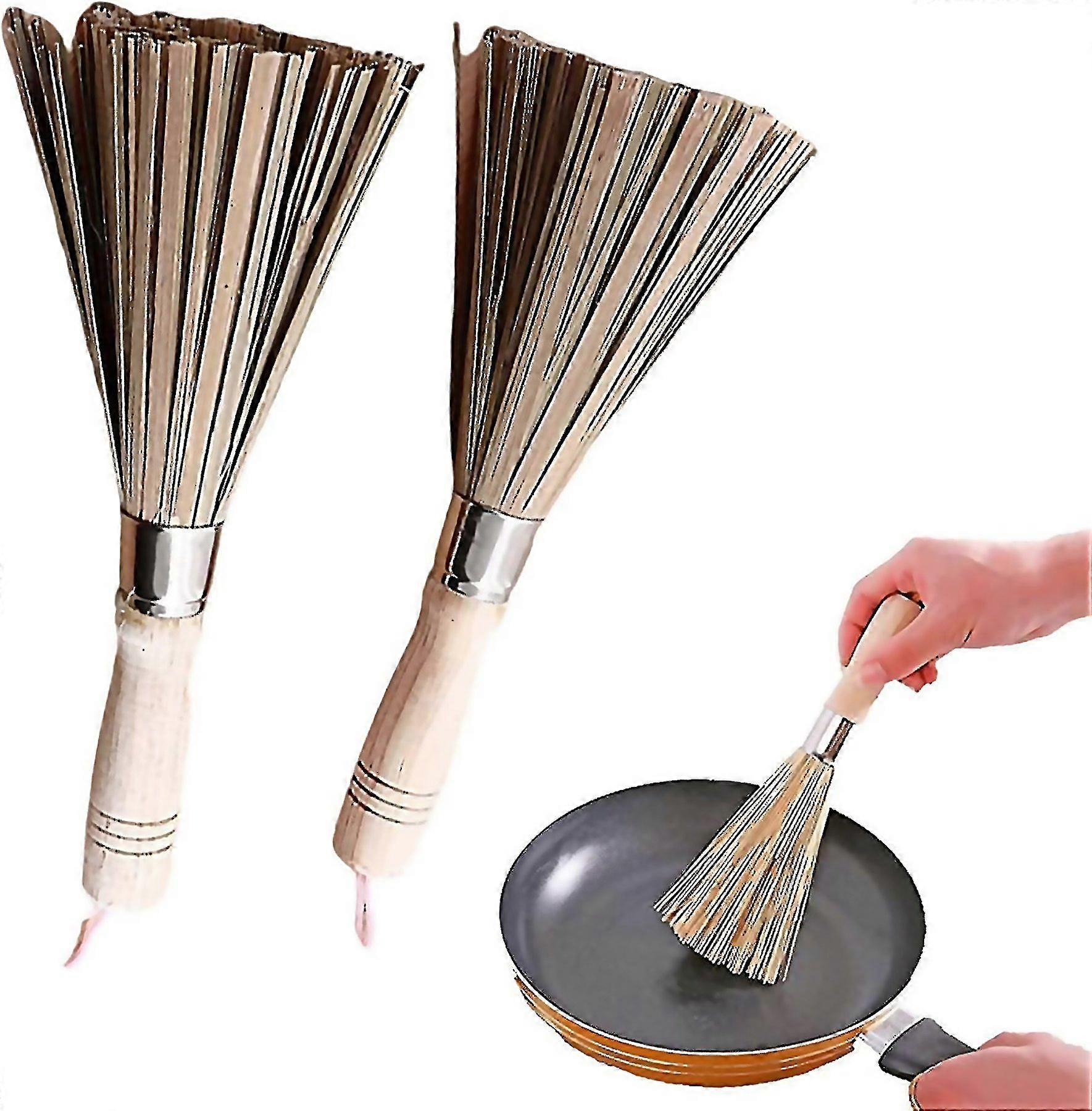 For Bamboo Wok Brushes Narrow Neck Bottle Brush Pot Clean Brush Kitchen Sink Brush 2 Pc Cleaning Bru