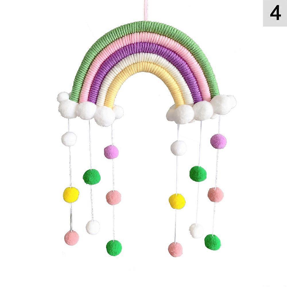 1 PC Cute Rainbow Clouds Tapestry Felt Ball Macrame Wall Hanging Decor Handmade Woven Photo Prop Room Decoration Crafts