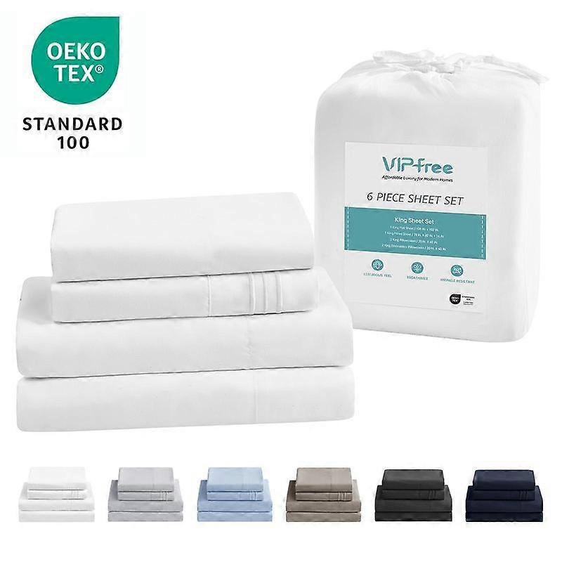 VIPfree FallFreshness Breathable & Cooling Sheets Hotel Luxury Bed Sheet Set Extra Soft Deep Pockets Easy Fit Oeko Tex