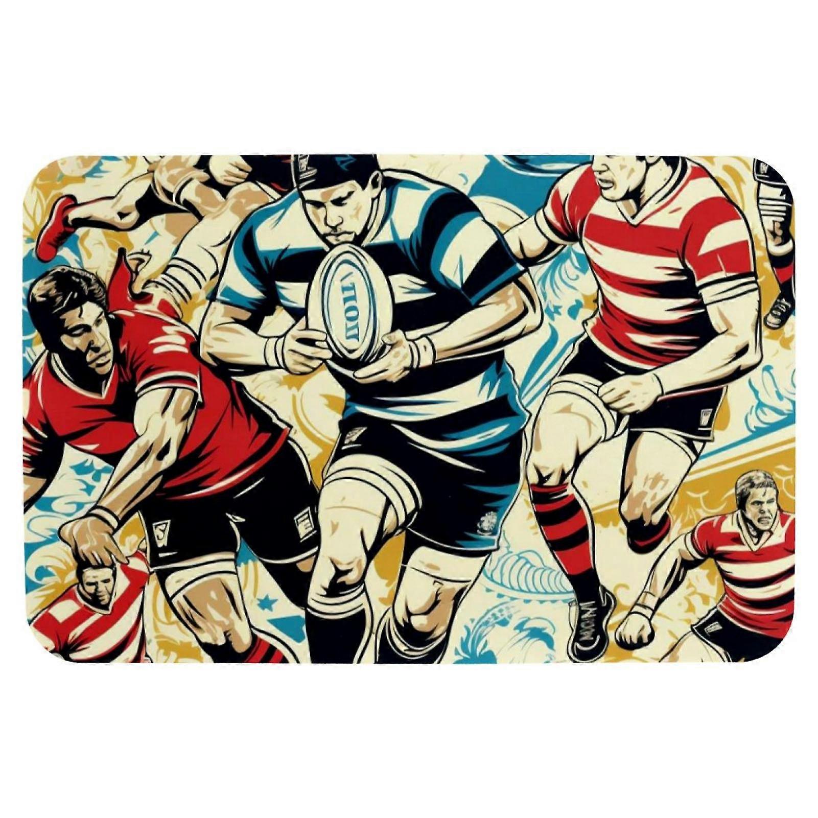 20x31in Rugby Sport Memory Foam Bath Mat, Machine Washable, Non-Slip, Quick Dry, Soft & Absorbent - Compatible with Standard Floors