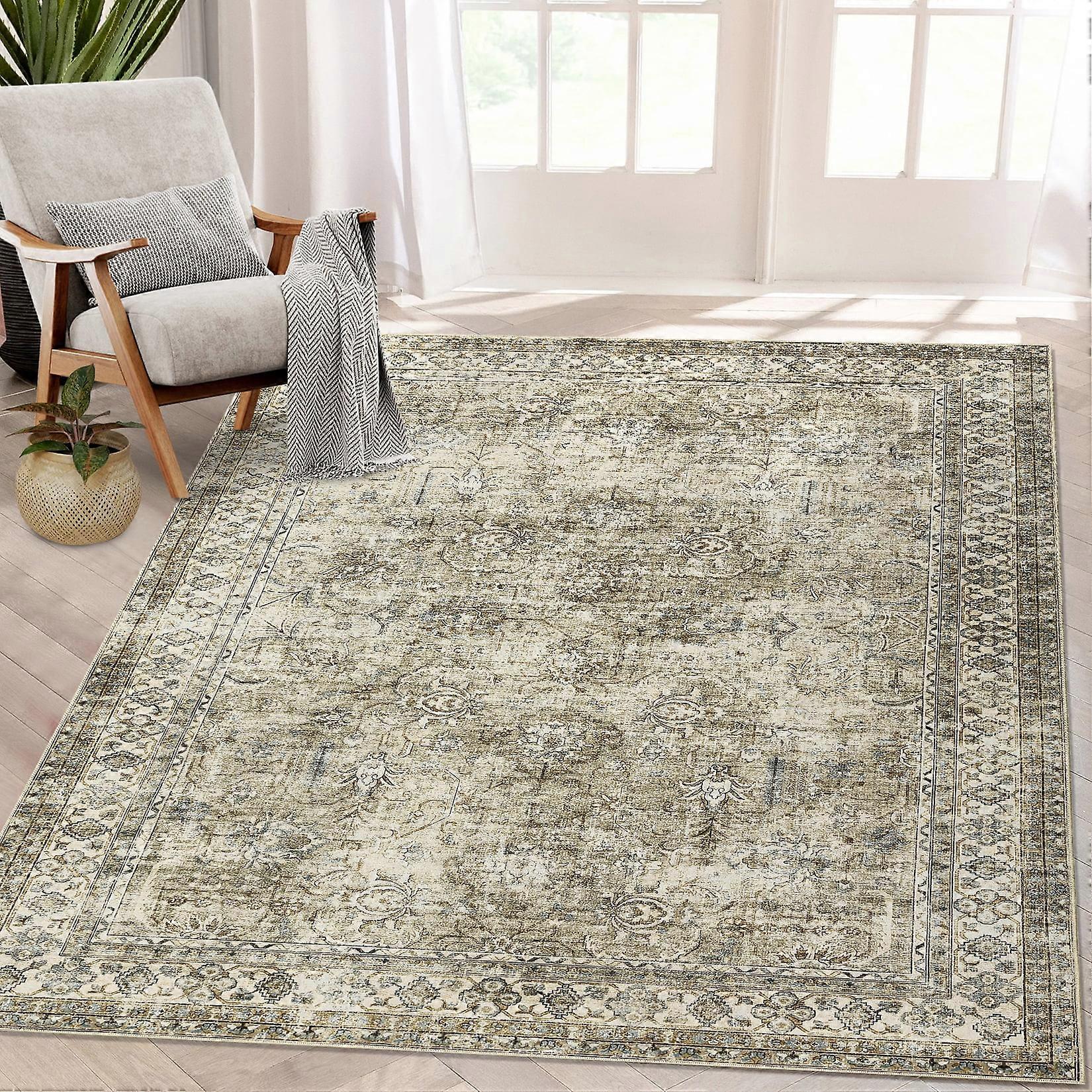 Haperlare Oriental Area Rug 3'x5' Taupe, Machine Washable Vintage Low Pile Floral Carpet for Living Room Bedroom, Compatible with Home Decor