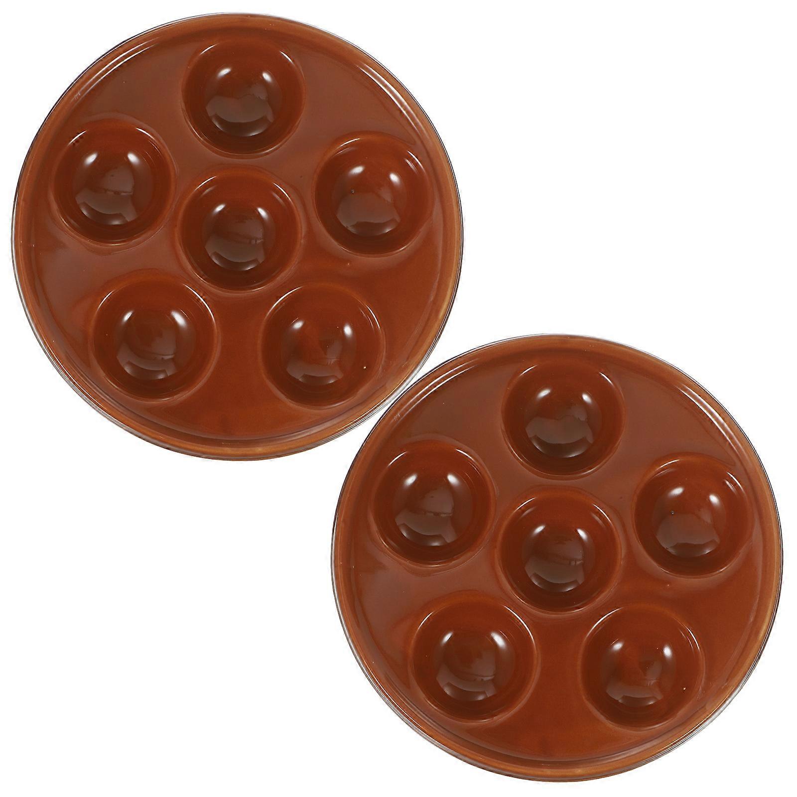 Escargot Baking Pan Ceramic Plate for Cooking 2Pcs Brown Household Tableware