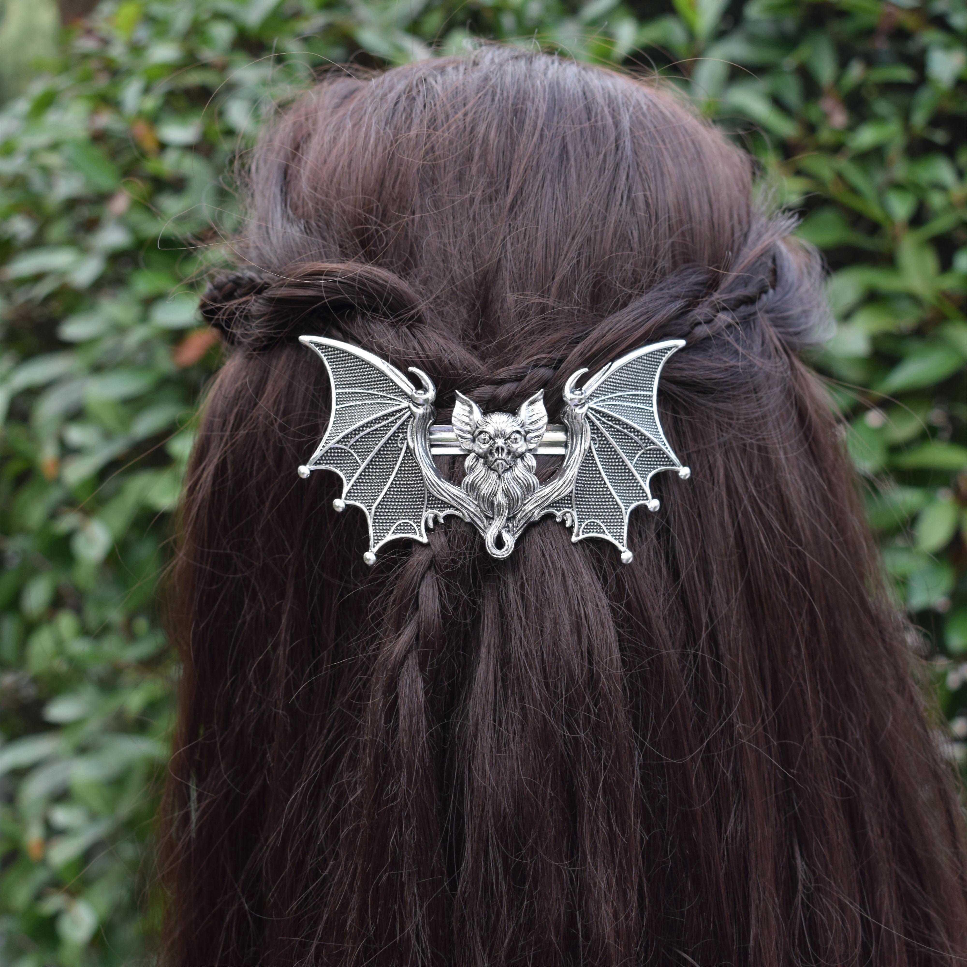 Gothic witchy Halloween big Bat wing Barrette hair accessory