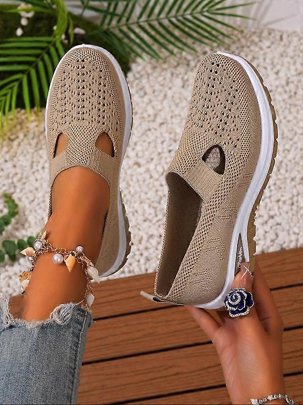 Women's Fashionable Plain Color Slip on Mesh Breathable Lightweight Sneakers, Casual Comfortable Sports Running Shoes, All-match Round Toe S