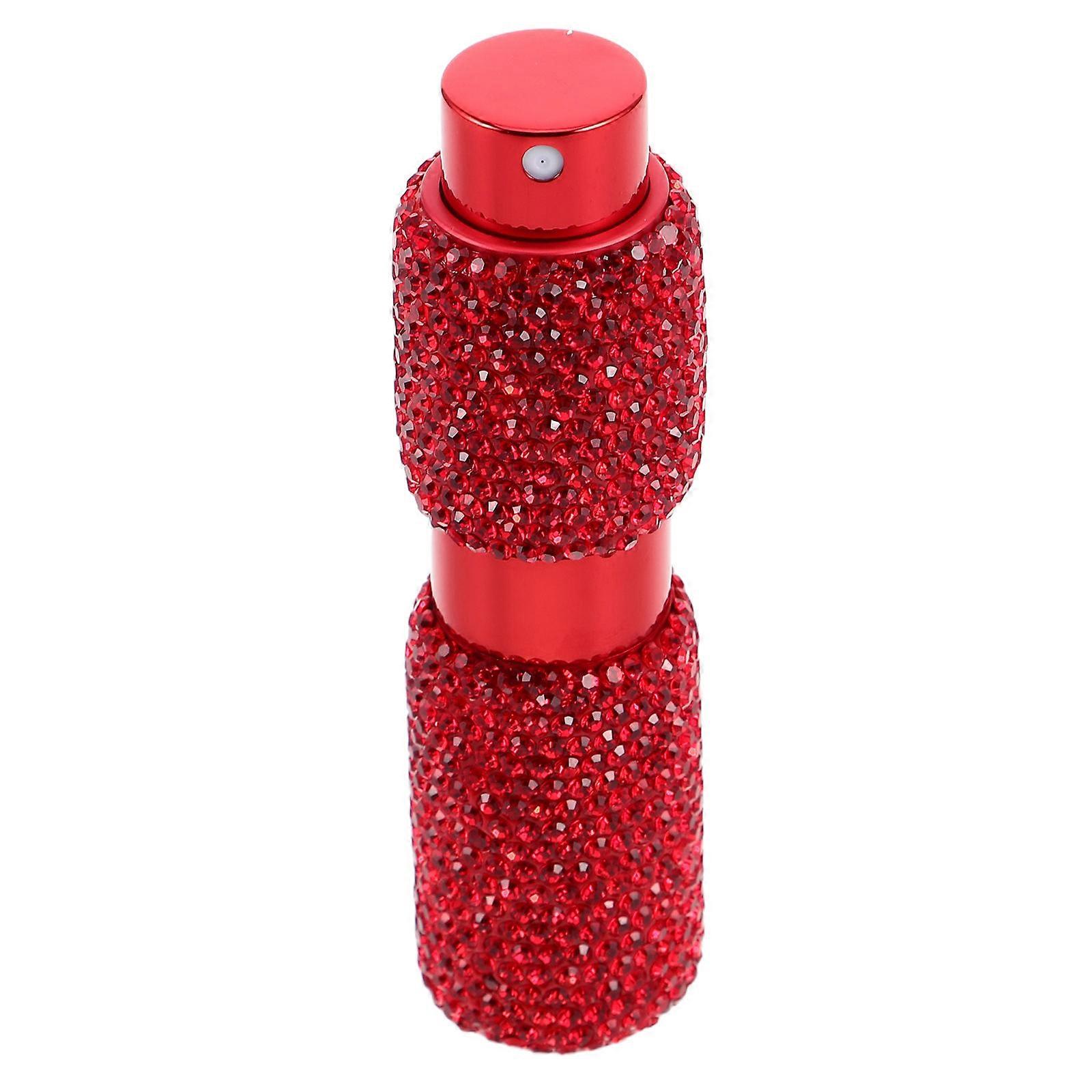The sleek and sophisticated design of this perfume bottle mimics the appearance of a lipstick, adding a touch of style, glamour to your daily routine. The rotating and retractable spray feature allows for precise and controlled application, ensuring you can enjoy your favorite scent anytime, anywhere. Features -Color:Red -Material: Rhinestone, Aluminum -Size:9.50X3.00X3.00cm/3.73X1.18X1.18in -Portable size: this compact and lightweight perfume bottle is nice for on the go use, fitting easily into your bag or pocket -Multipurpose: ideal for storing perfumes, makeup, and essential oils, this portable perfume travel caters to different requirements -Sophisticated look: the elegant and fashionable design of this portable perfume travel refillable adds to your collection -Userfriendly: the twisting and spray mechanism ensures easy operation, rhinestone bottle is practical -Strong construction: crafted from rhinestone and aluminum materials, this travel perfume bottle is sturdy and built to last Package list: 1 x spray bottle