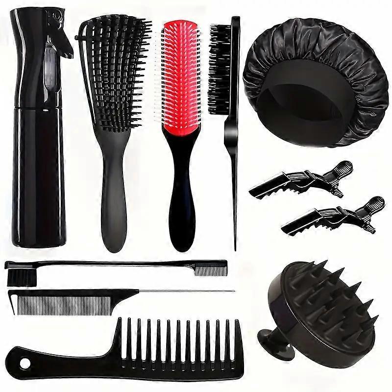 11pcs Unisex Professional Hair Styling Set - Durable PET Water Spray Bottle, Hollow Out Brush, Shampoo Brush, Rat Tail Comb