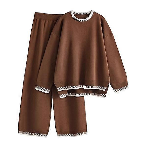DUTUT Women's 2-Piece Sets Outfits Chic Comfortable Elastic Loungewear Crew Neck Pajama Matching Sweatsuit Set Casual Sweater High Waist Loo