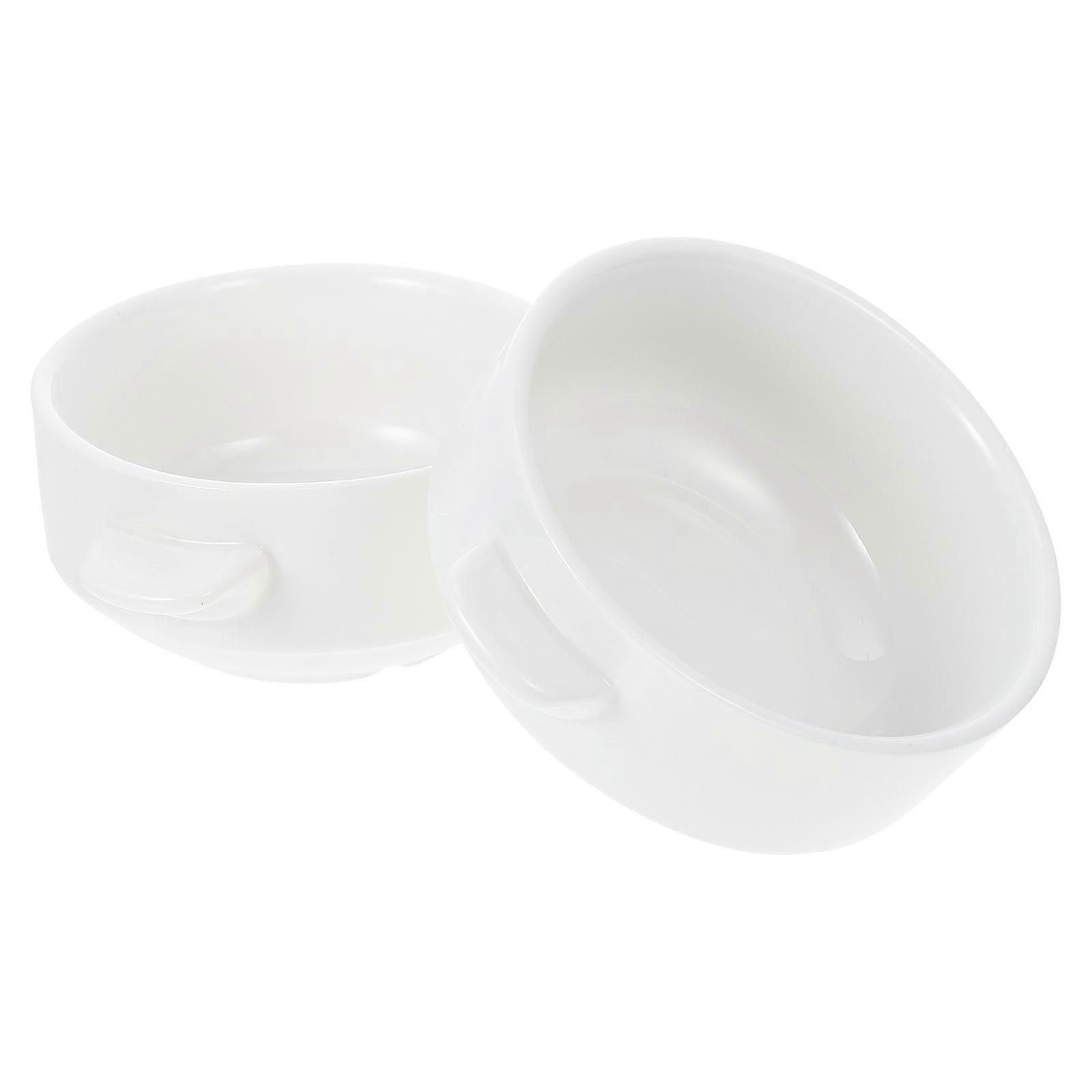 Ceramic Soup Bowl with Handle for Home 2Pcs White Bowls