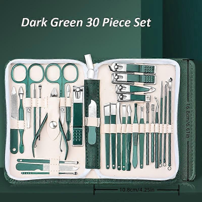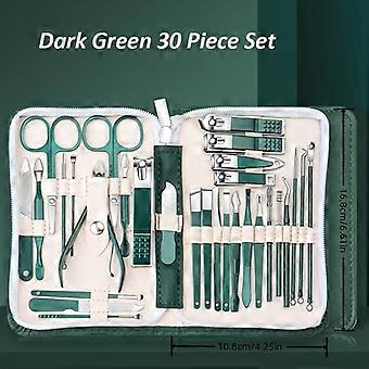 30pcs Professional Stainless Steel Nail Clipper Set Green Nail Tools Manicure Pedicure Set of 30pcs Travel Grooming Kit