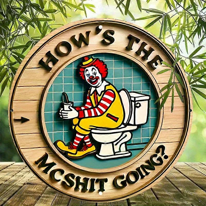 Vintage Clown Metal Sign 7.8" Round Aluminum Wall Art - Humorous Bathroom Decor for Bar Cafe Beach House Retro