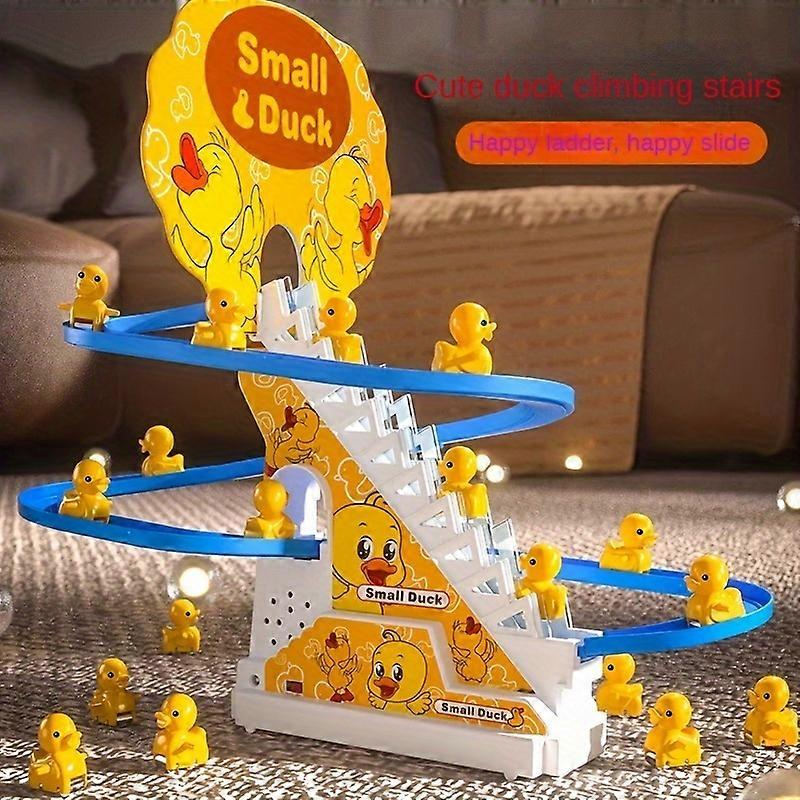 6pcs Ducklings Climbing Stairs Toy, Electric Slide Yellow Duck Toy Light And Music Toy easter gift halloween christmas gift