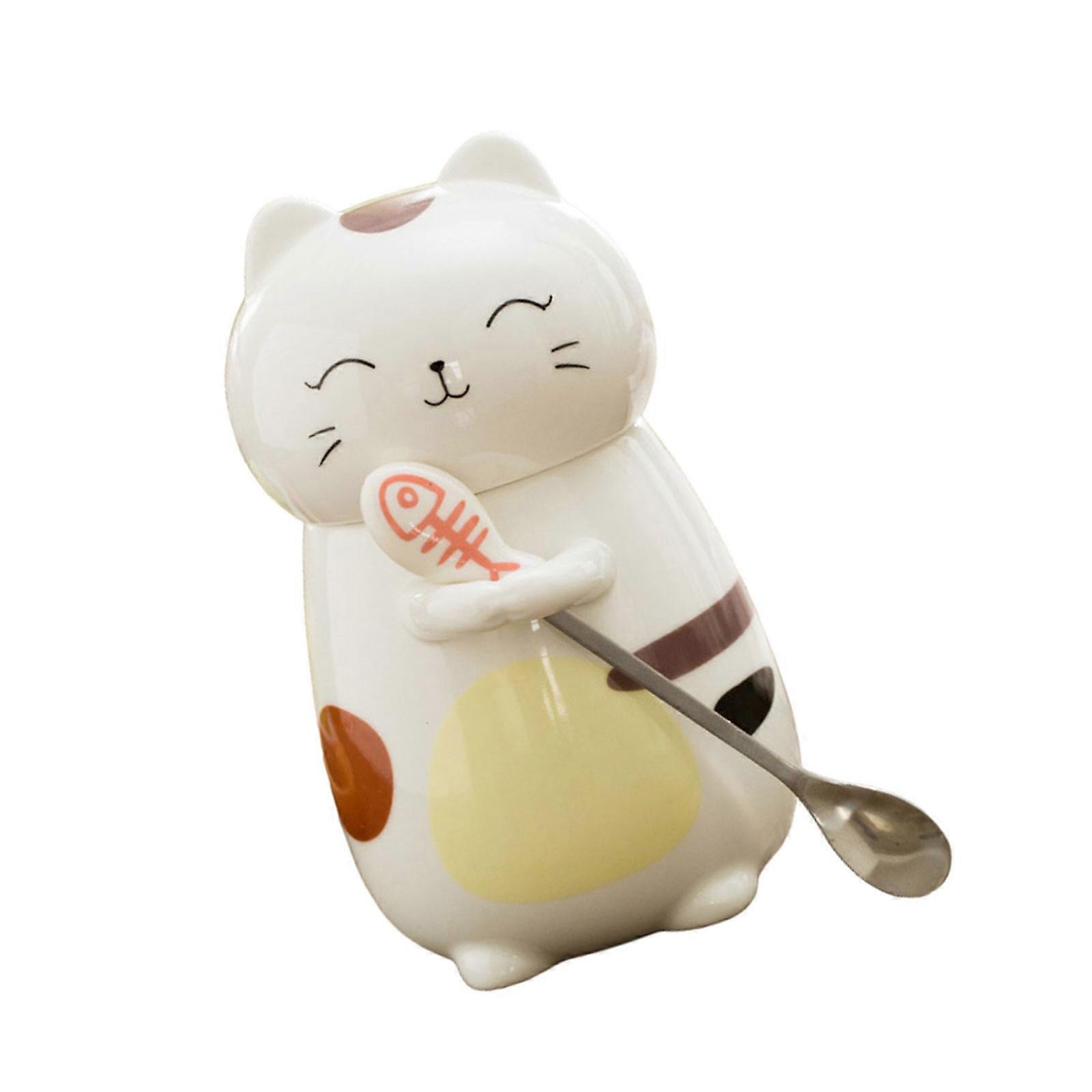 Cute Cats Mug Creative Ceramic Coffee Mug with Spoon Porcelain Milk Cup Coffee Cup with Spoon and Lid Multicolor