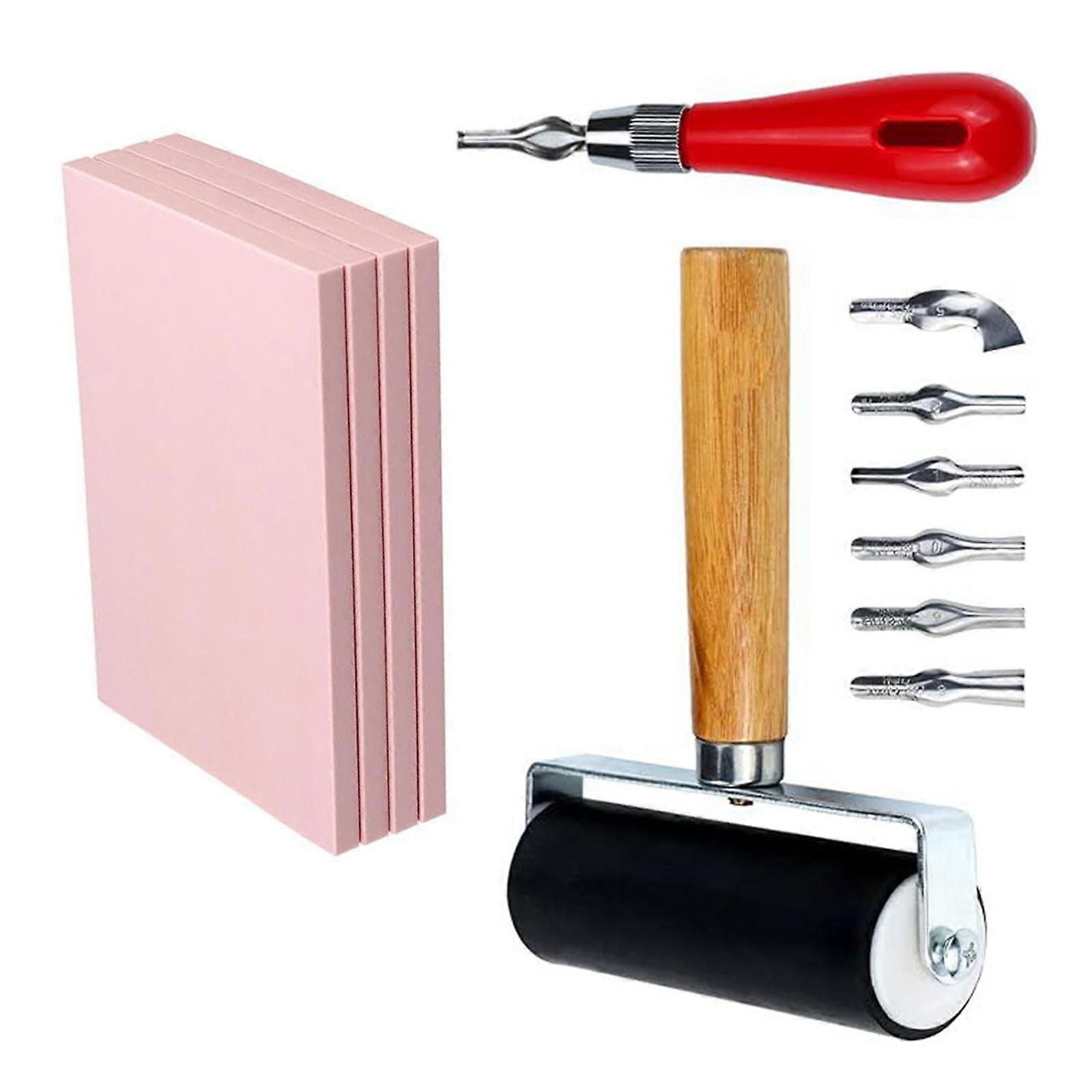 Carve Stamp Making Kits Rubber Stamp Making Kits with Stamp Block Rubber Brayer Roller for Carving Printmaking Crafts Multicolor