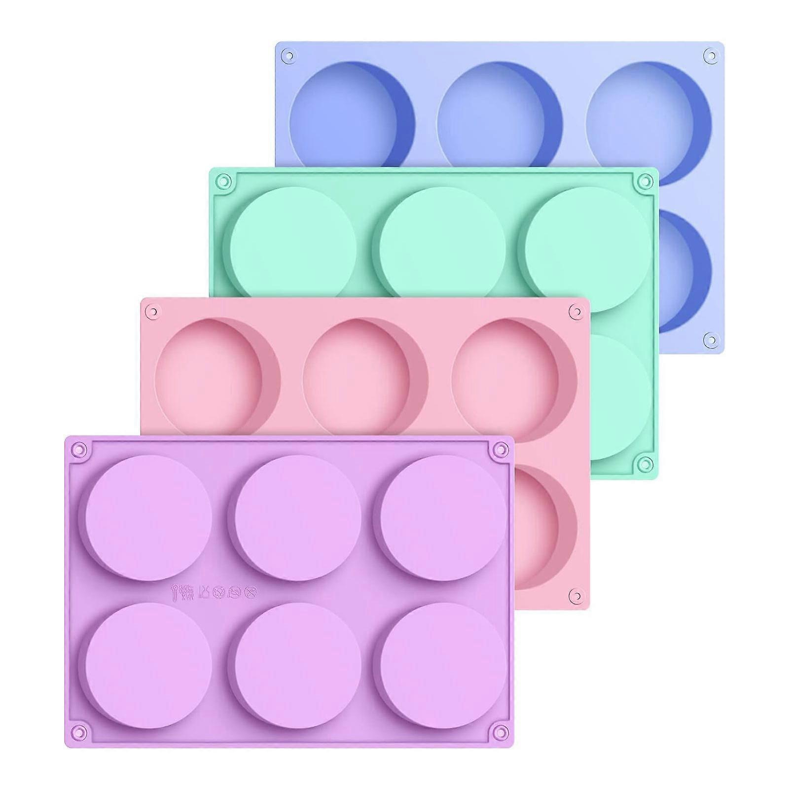 4Pcs 6-Cavity Round Silicone Mold Fondant Chocolate Mould DIY Cake Dessert Mould Kitchen Baking DIY Supplies Nonstick Multicolor