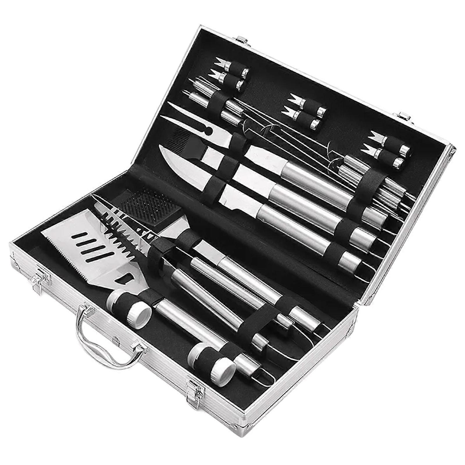 18Piece Grill Tool Set with Aluminum Case Outdoor BBQ Utensils Barbecue Cutlery Set Perfect for Outdoor Barbecues Multicolor