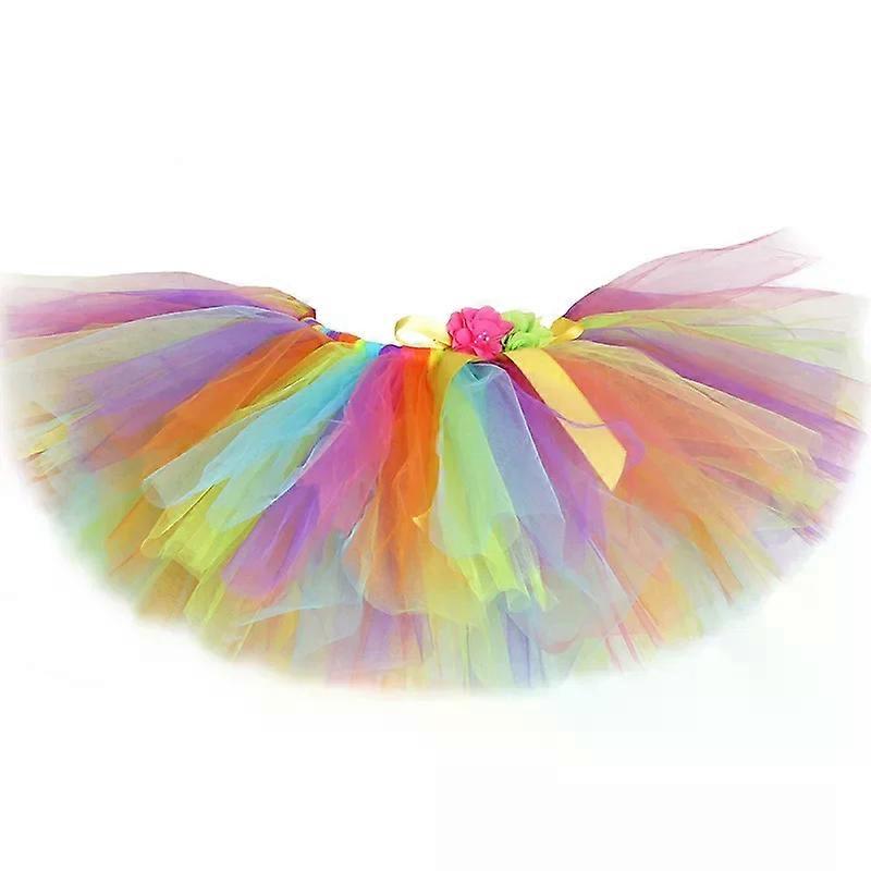 Girls Rainbow Unicorn Tutu Skirt Fluffy Flowers Girls Tulle Skirts Halloween Birthday Party Dress Up Toddler Kids Tutu Costume