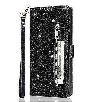 Suitable for Google 9 Pro XL, glitter zipper card holder, leather case, Pixel 8A lanyard wallet/phone case