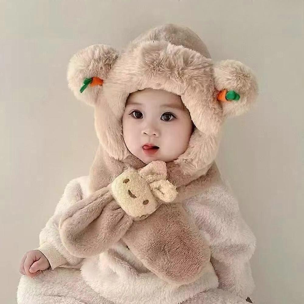 Kids Plush Hat Winter Scarf One Piece Hat Plus Velvet Cartoon Two Piece Set Cute Baby Boys and Girls Earmuffs Hat Miniso