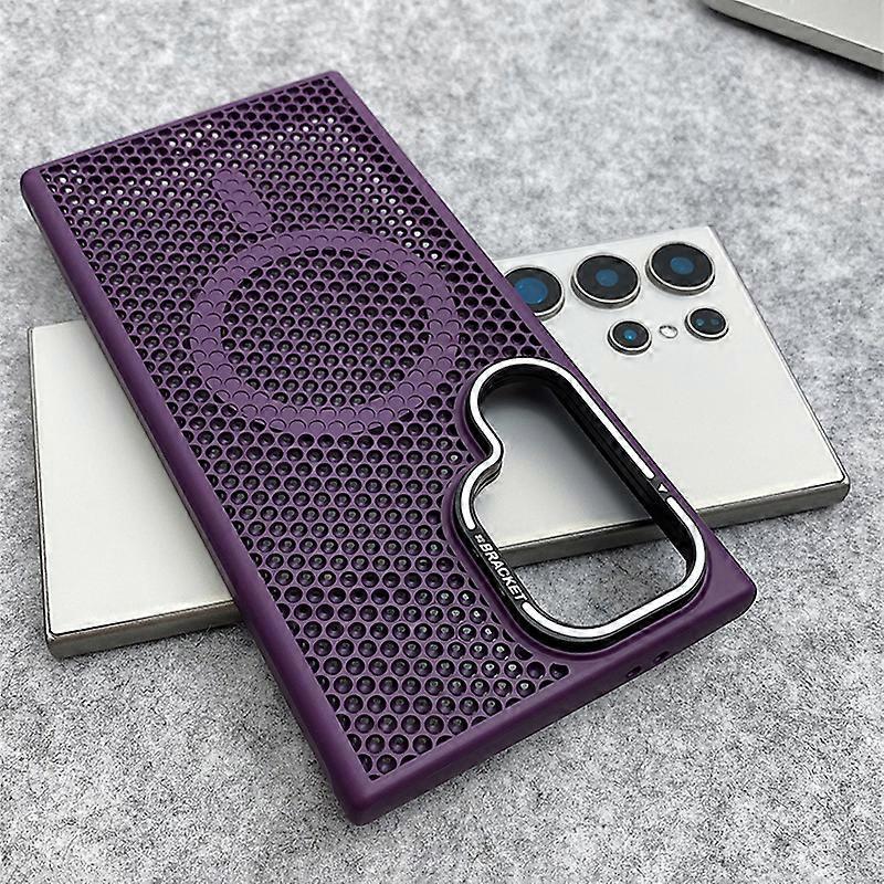 Honeycomb Mesh Cooling MagSafe Phone Case for Samsung Galaxy S25 Ultra S24 S23 Alloy Lens Bracket Wireless Charge Hard PC Cover