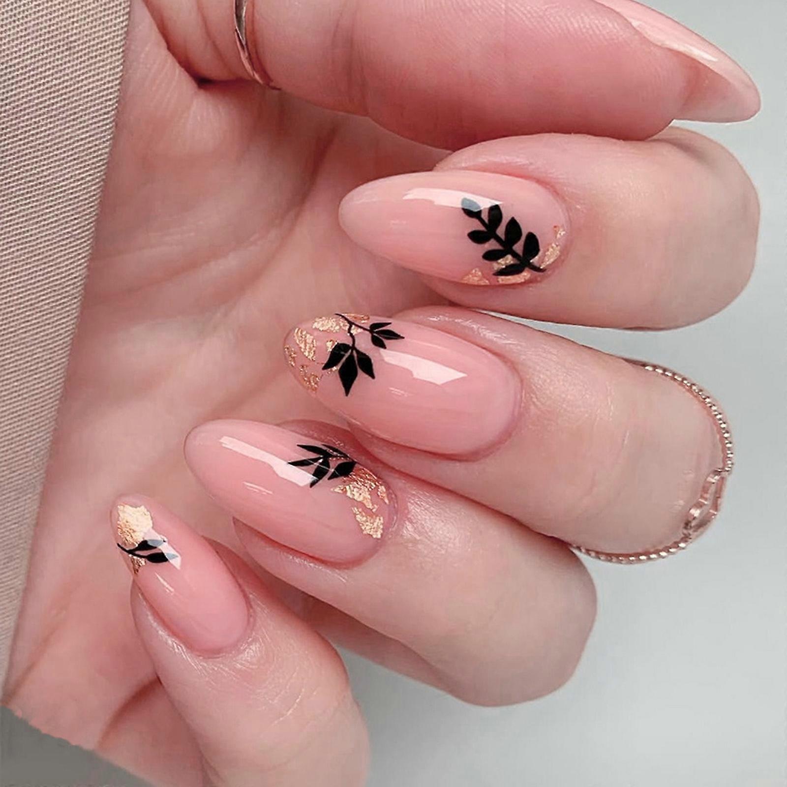 User Friendly Plastic Press On Nail Set Leaf Glitters Styles Easy To Apply Nail Art For Parties Daily Travel Wear Multicolor