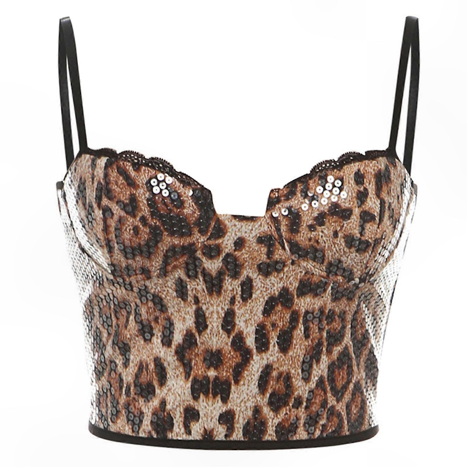 Leopard Print Sequin Low Rise Shorts for Women Party Outfits Streetwear Festival Shorts L Size