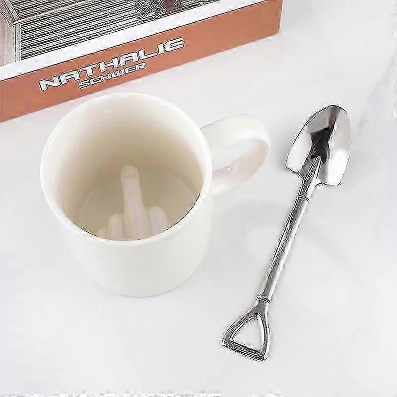 Creative White Ceramic Mug with Middle Finger Design - 300ml Capacity for Coffee, Tea, or Milk Mixing