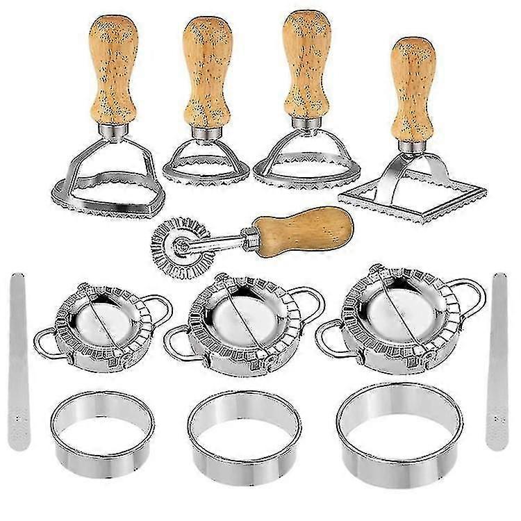 Metallic color Material Stainless steel, Wood Blade material Stainless steel Number of settings 13 Mode of Manual operation Dishwasher safe Yes Is electric No See more About this item High Quality MaterialThe ravioli mold is made of 304 food grade stainless steel, which is light in weight, strong and durable, has a long service life and can be reused; It is safe and harmless, will not rust or warp, and is dishwasher safe. Easy to Use Ravioli Mold, this is a simple, convenient dumpling mold and fast. It's effective cooking magic. You only need to spread the batter, place the fillings and press to seal the dumplings. Get a perfect dumpling. Wide UseThis dumpling tool has a wide range of uses, which can be applied to dumplings, cars, pot stickers, Italian butterflies, small pies, small cookies and some small desserts, etc., which is easier for you and your family and brings more easily. Perfect gift Suitable to wear, very suitable for DIY baking; You can give such a set of tools to your wife or friends who like to cook, it will bring many happy times and experience the food culture of different regions.