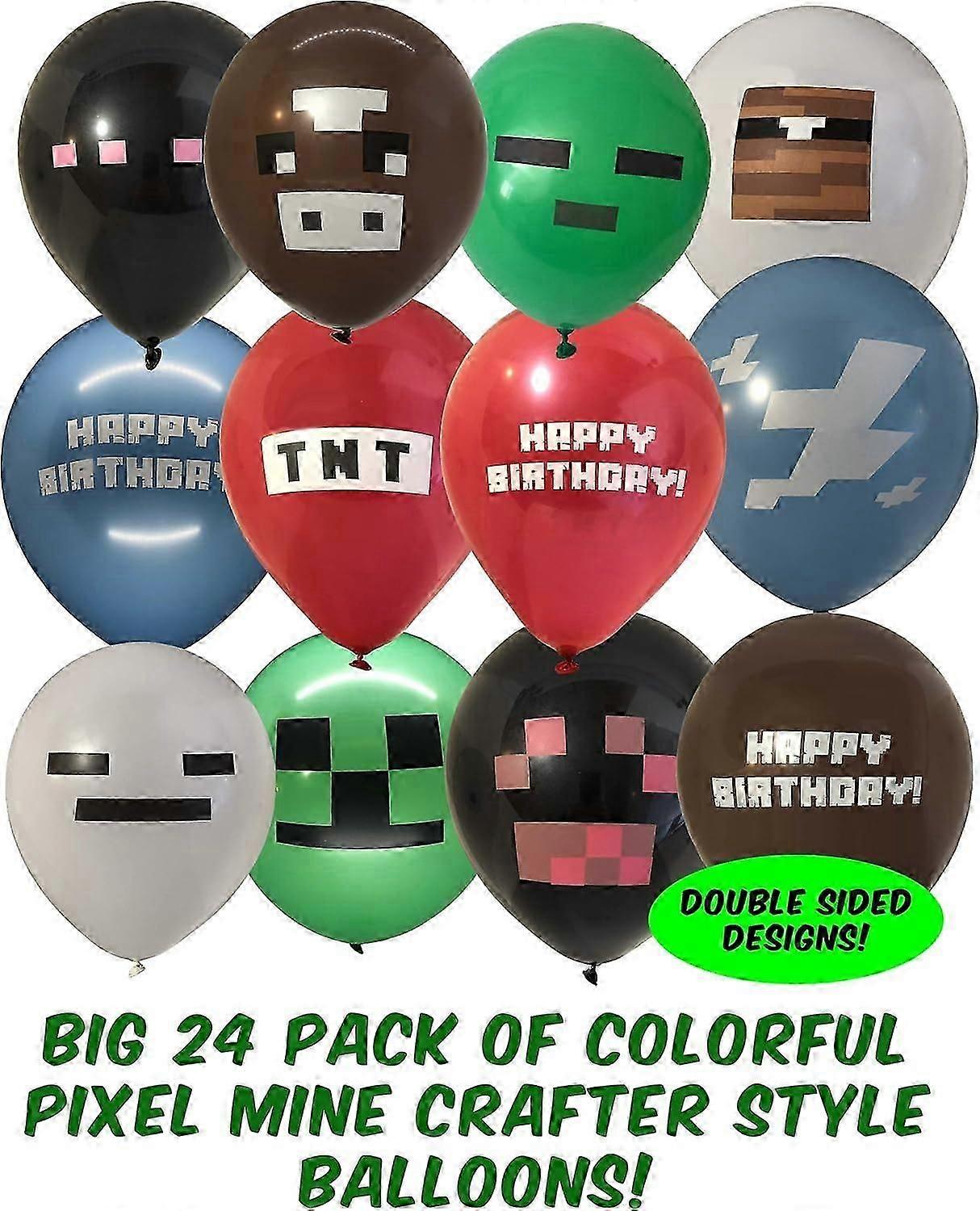 Gamer Party Balloons 24 Pack Double Sided 12" Latex Pixel Miner Crafting Theme