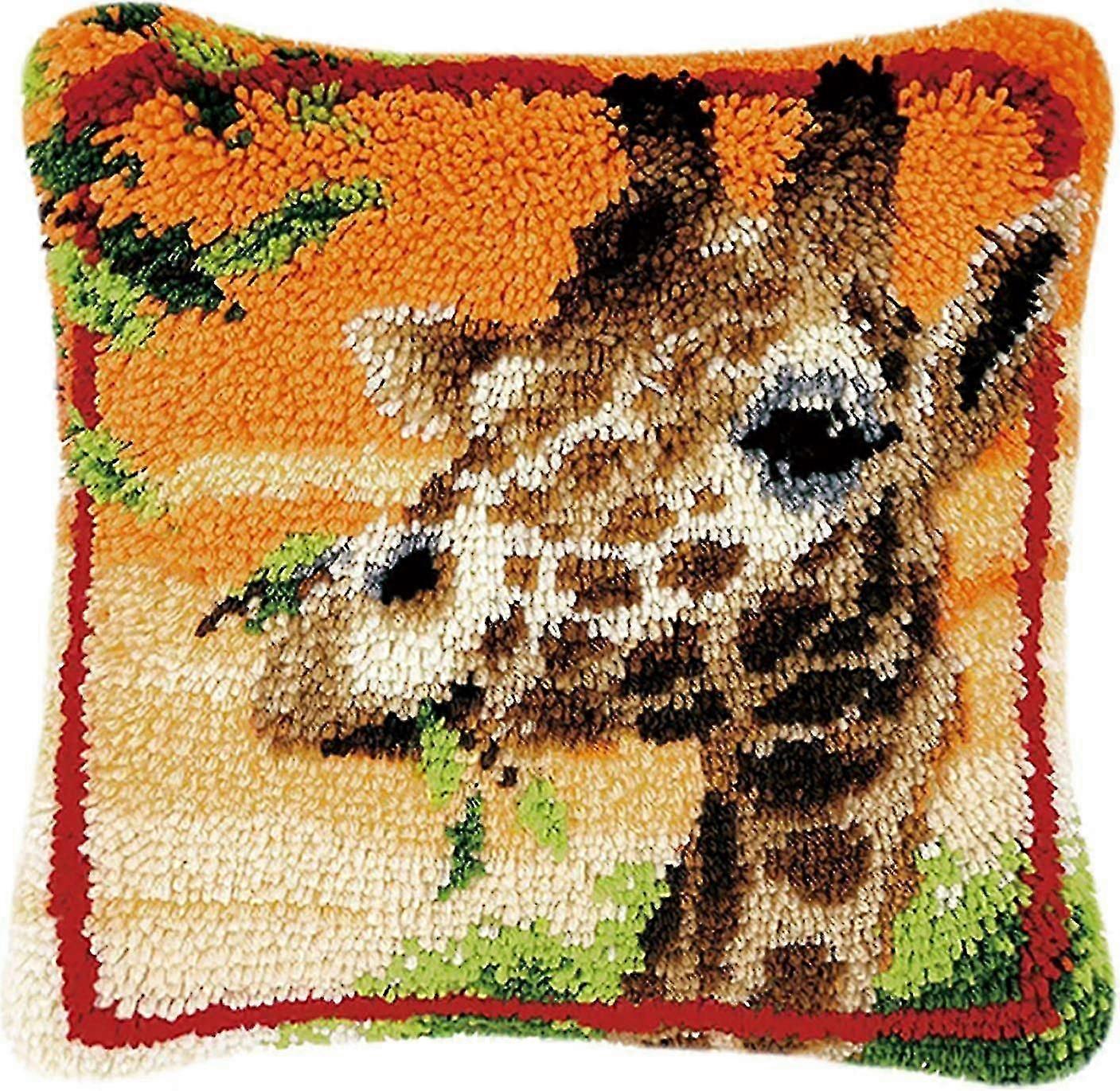 Giraffe Latch Hook Pillowcase Embroidery Kit 43x43cm Cushion Cover Home Decor (BZ-240) 1pc