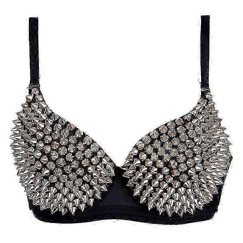 Sexy Steampunk Dance Bra with Metallic Rivets Push Up Underwear for Women