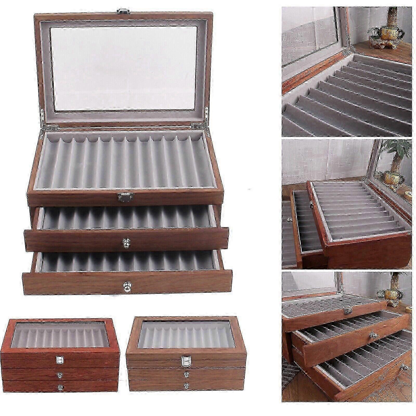 34 Position Wooden Pen Storage Box Vintage Style Display Case