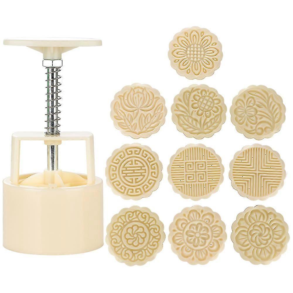 10-Piece Mooncake Mold Set for DIY Baking and Decoration