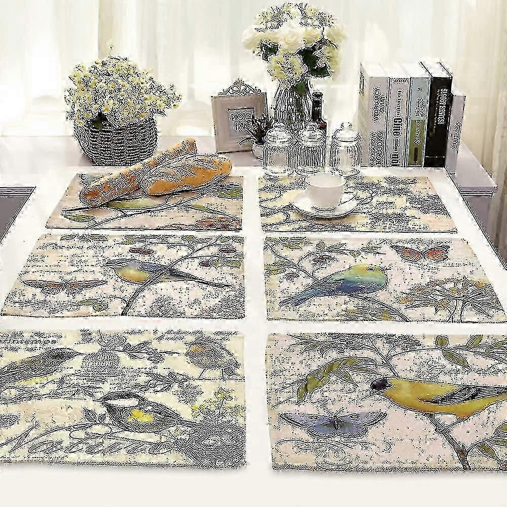6pcs Bird Design Placemats for Dining Table Non-Slip Holiday Kitchen Decor