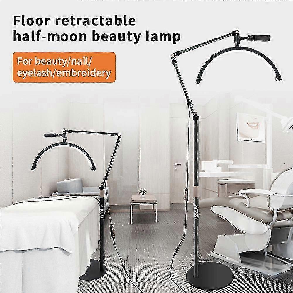 Enhance your lighting setup with the Andoer HD-M2X 20W Floor LED Video Light, a multifaceted tool designed to cater to the needs of beauty salons, makeup artists, live streamers, and anyone seeking superior lighting. This specially designed light combines functionality with aesthetic appeal, making it a perfect addition to your creative space. Half-moon Floor Fill Light: Embrace the unique half-moon design, equipped with 180 bi-color temperature lamp beads. With a powerful 20W output and a high color rendering index of 90+, this lamp ensures vibrant, true-to-life colors, ideal for desktop vlogs, beauty salon live streaming, and various beauty projects. Bi-Color Temperature & Dimmable: Tailor your lighting experience with three distinct modes, offering an adjustable color temperature range from 3000K to 6000K. Whether you desire a cozy warm glow or a crisp cool light, the adjustable brightness allows you to create the perfect ambiance for any setting, ensuring optimal lighting conditions for every occasion. Flexible Rotation Design: Enjoy complete flexibility with the lamp heads 360 rotation capability. Easily adjust the lighting angle to suit your recording needs without any obstructions, making it effortless to achieve the ideal lighting setup for your video projects. Adjustable Floor Light Stand: The robust metal light stand offers adjustable height from 54cm to 100.5cm (21.25 to 39.57 inches), complemented by a large 26cm (10.23 inch) metal base for stability. This design allows the light to be placed securely on the floor, providing a reliable and convenient lighting solution for a variety of applications. With Phone Holder: The included adjustable and rotatable phone holder is compatible with most smartphones on the market, allowing seamless integration into your setup. Easily attach your phone to the light for high-quality video recording, expanding your creative capabilities with ease. The Andoer HD-M2X 20W Floor LED Video Light offers professional-grade lighting with exceptional versatility and convenience. Whether you're a beauty enthusiast, a content creator, or just looking to enhance your lighting environment, this fill light delivers outstanding performance and adaptability, transforming any space into a professional studio. Note: Due to the light and screen setting difference, the item's color may be slightly different from the pictures. Please allow slight dimension difference due to different manual measurement. Sold by-DIMEANI official store