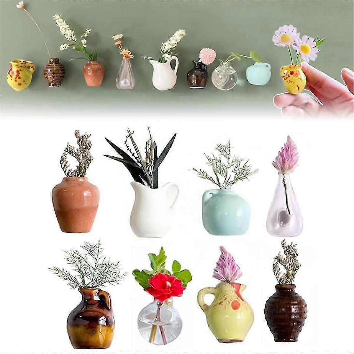 8PCS Small Vase Magnets for Refrigerator - Ceramic 3D Flower Holder