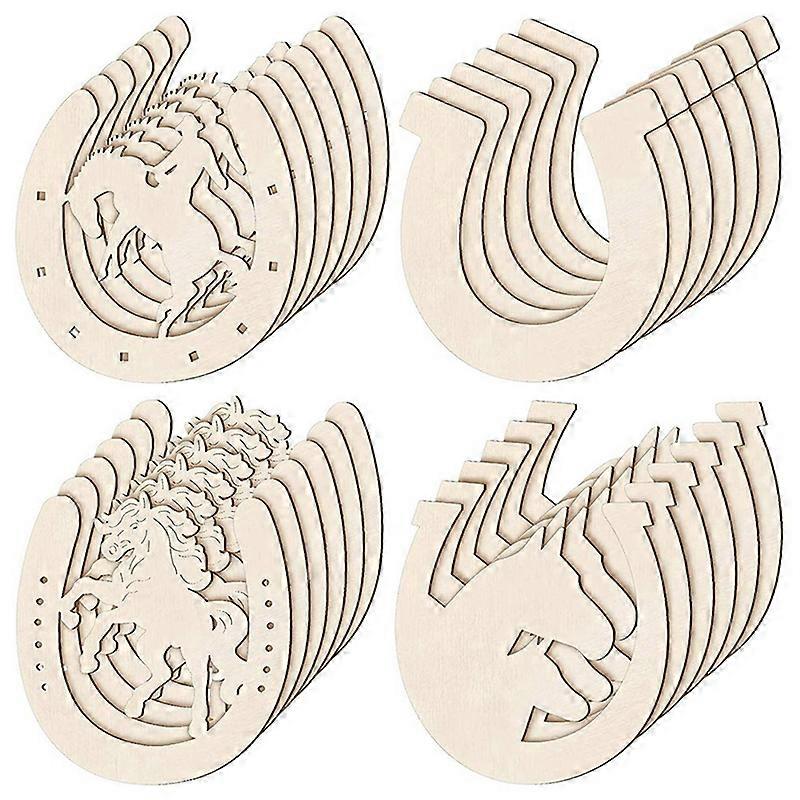 A34R 96 Pcs Horseshoe Shape Wood Cutouts For Crafts Unfinished Wooden Horseshoes Small Cowboy Party Decorations