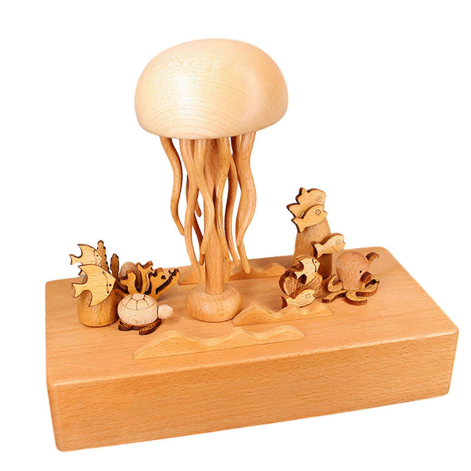 Wooden Jellyfish Music Box Captivating Ocean Theme, Perfect Gift for Music Lovers Multicolor