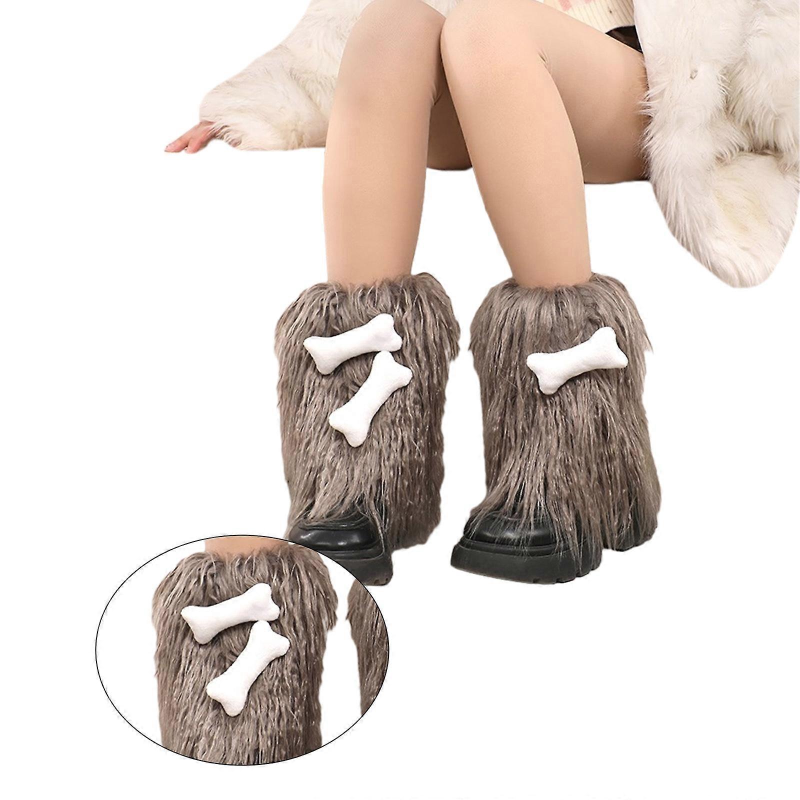 Fuzzy Boot Cuffs Short Leg Warmer for Women Girls Japanese Style Winter Cute 3D Bone Anime Furry Plush Leg Cover Sock Multicolor