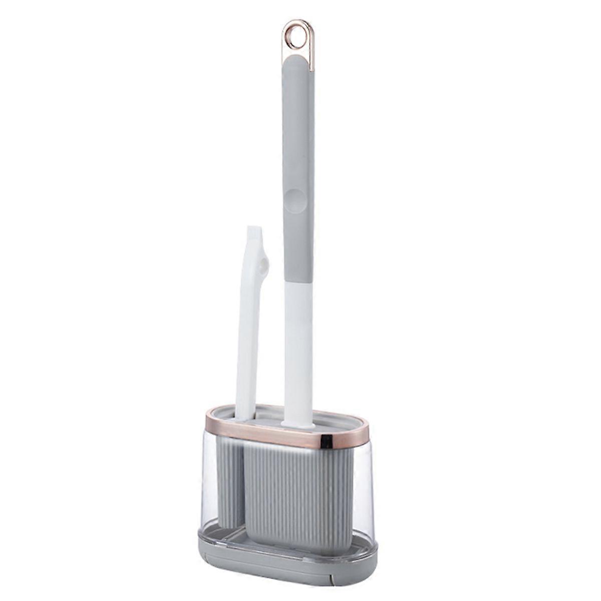 2-in-1 Toilet Brush with Long Handle and Transparent Base Anti-Drain Design for Easy Cleaning Brush