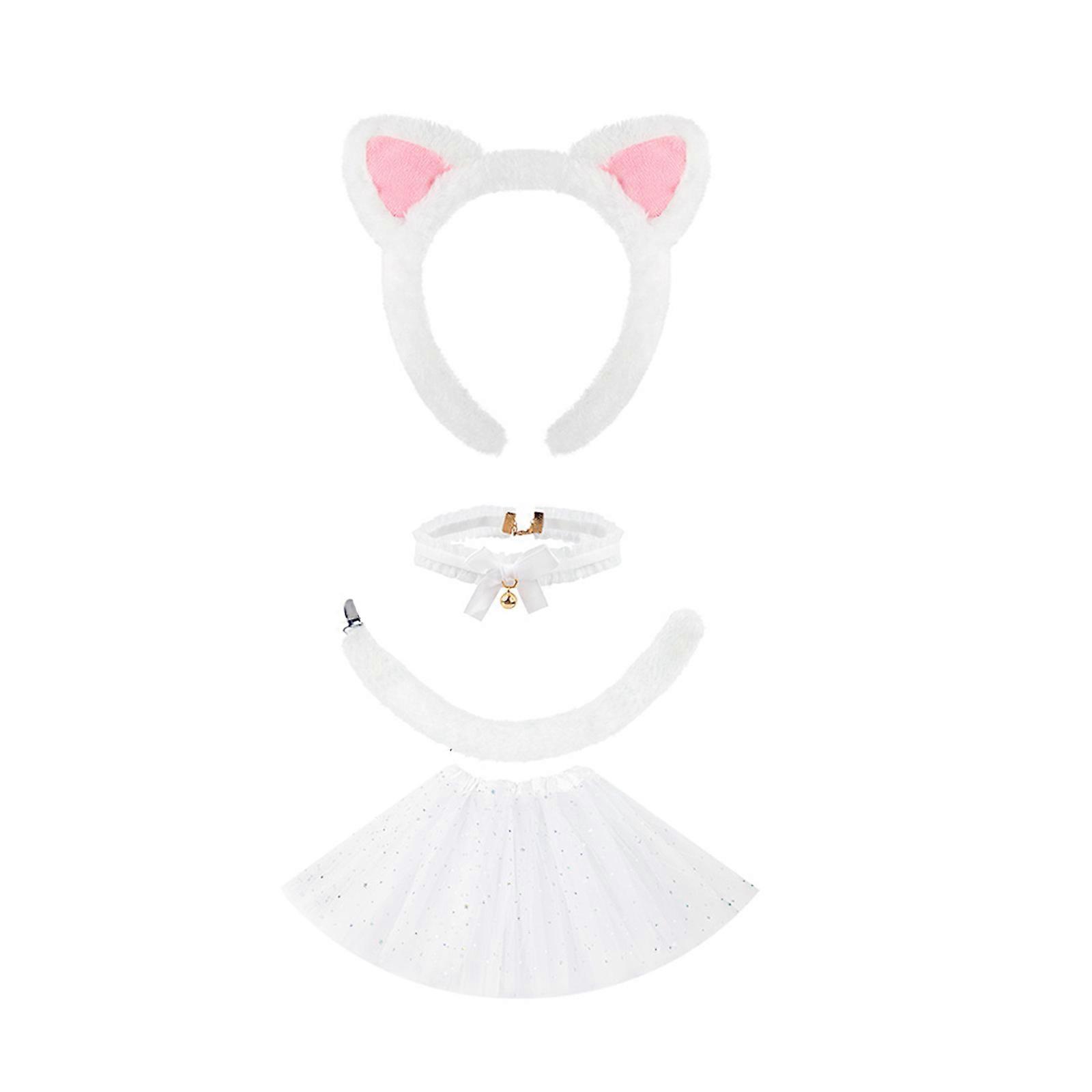 Cats Costume Set Ears Tail Choker Tutu Skirt Animal Fancy Costume Kit Accessories for Kids Girls Halloween Cosplays Props White 4PCS set