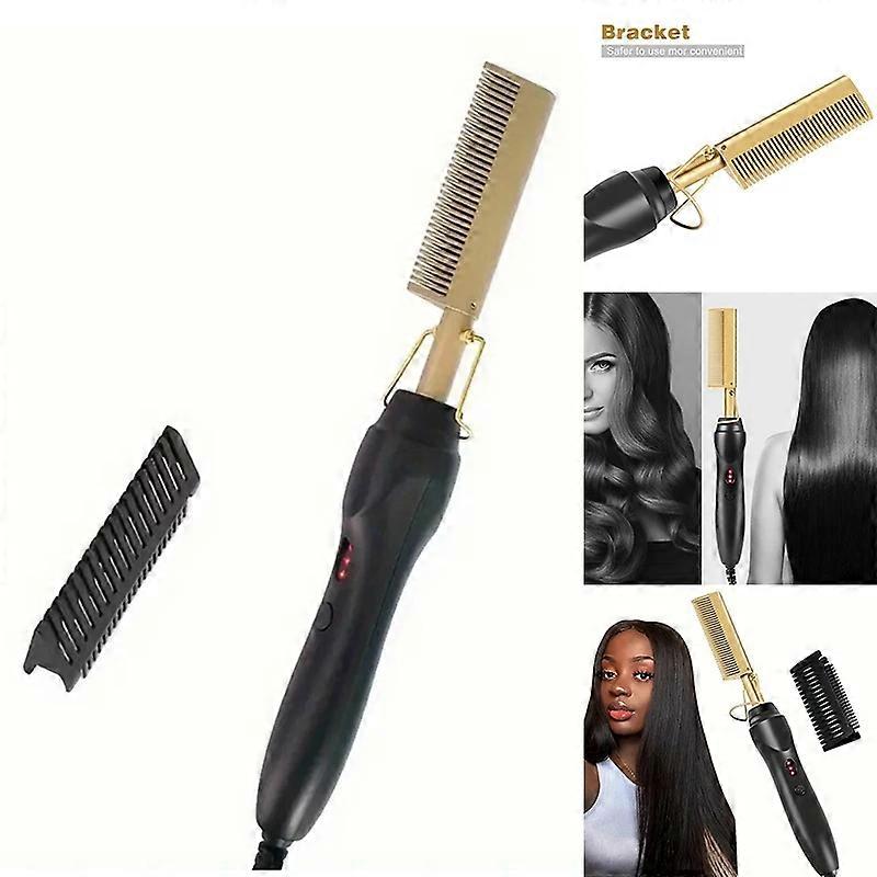 3 IN 1 Comb Electric Hair Straightener Comb Copper Metal Hot Hair Comb Home Beauty Salon DIY Fast Heating Curling Iron Copper