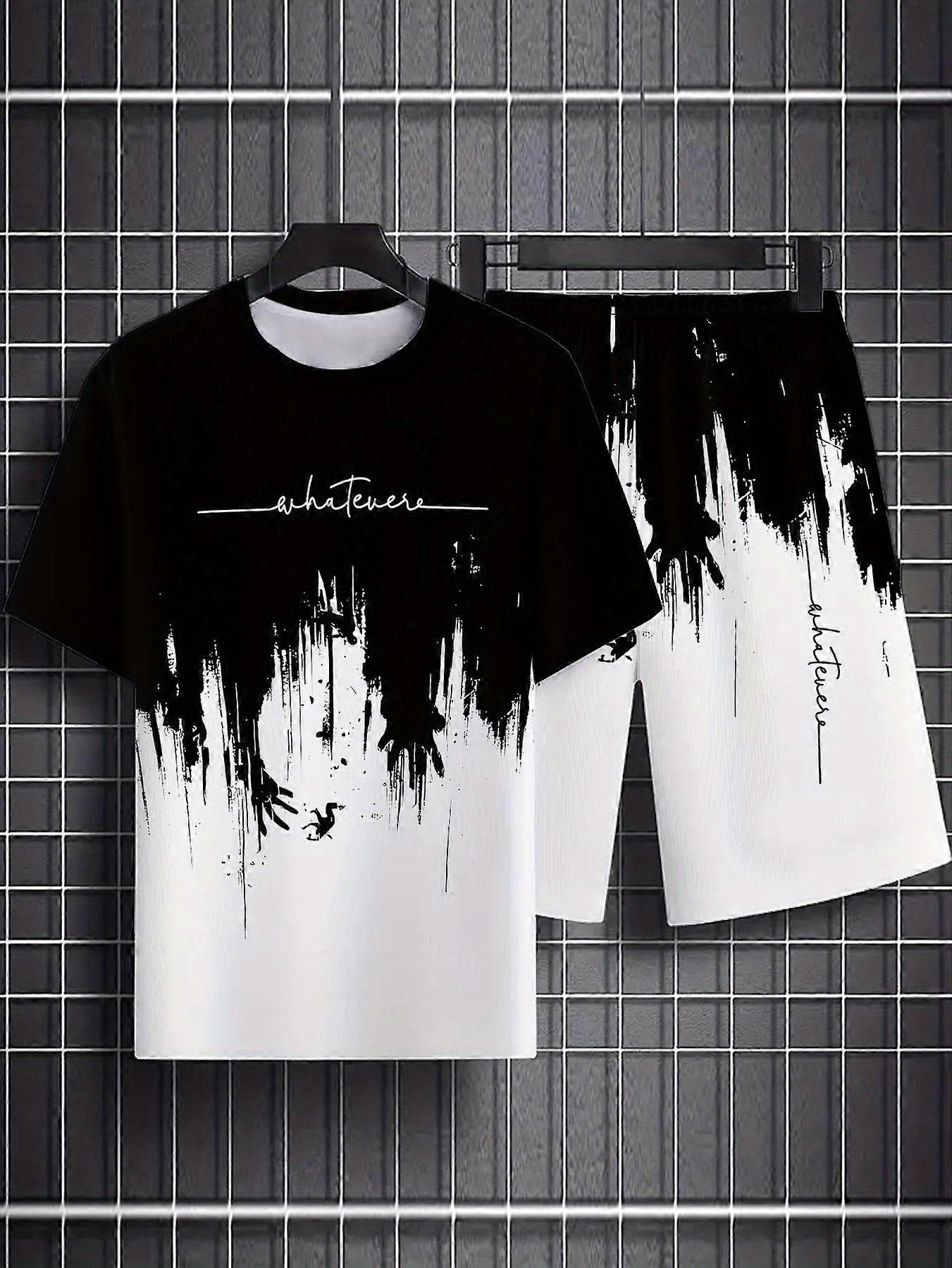 Men's summer fashion new letter ink print comfortable and breathable round neck T-shirt shorts set outdoor casual wear